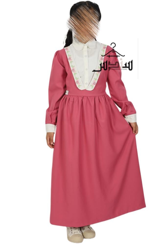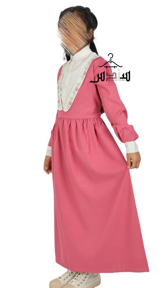 مريول وردي قطعتين مطرز باللون الوردي الفاتح والأخضر
