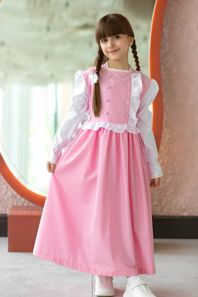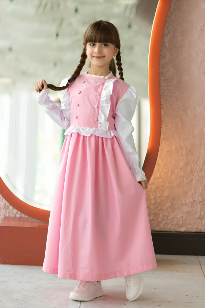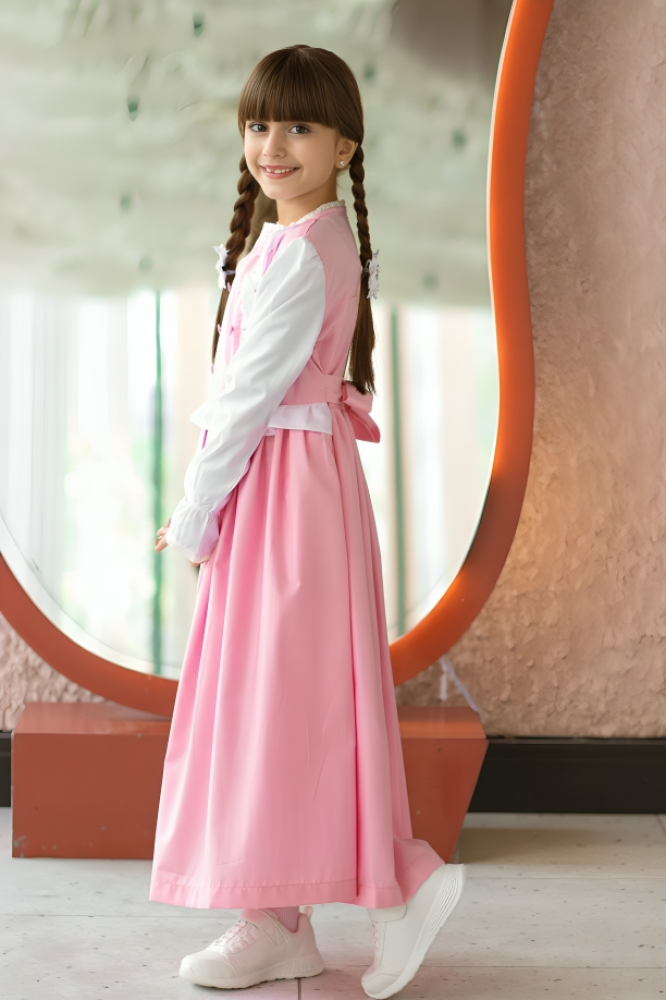 اختاري لصغيرتك إطلالة ناعمة وأنثوية مع مريول وردي قطعة واحدة من sondos store. تصميم عملي أنيق بلمسات طفولية ناعمة، يناسب أجواء المدرسة اليومية ويوفّر الراحة طوال اليوم.